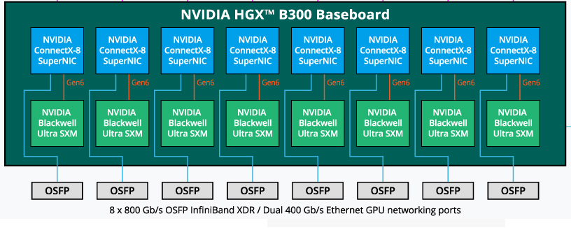 NVIDIA HGX B300 integra GPU NVIDIA Blackwell Ultra con interconexiones de alta velocidad para impulsar el centro de datos a una nueva era de computación acelerada e IA generativa. Como plataforma de escalado acelerado de primer nivel con hasta 11 veces más rendimiento de inferencia que la generación anterior, los sistemas HGX basados en Blackwell están diseñados para las cargas de trabajo de IA generativa, análisis de datos y HPC más exigentes.